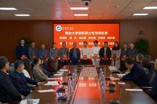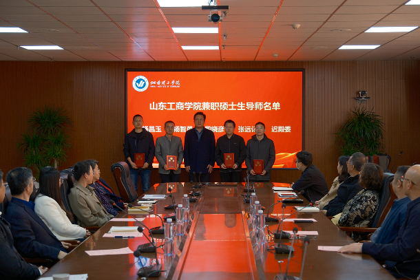 会议第一阶段为硕士生导师聘任仪式。烟台大学研究生处处长姜付义、山东工商学院研究生处副处长张大文分别宣读了两校聘任我校教师为兼职硕士生导师的名单,并依次为受聘教师颁发聘书。姜付义处长在随后的讲话中指出,希望受聘导师能与烟大校内导师密切协作,全程参与研究生培养,在过程中实现自我锻炼与成长。张大文副处长简要介绍了山东工商学院的研究生教育发展历程与现状。他强调,此次合作是加强校际联动、实现资源互补的重要举措,希望未来两校能在研究生联合培养方面取得更丰硕的成果。最后,副校长苏春景作总结讲话,他对两所高水平大学给予的支持深表感谢,并勉励全体受聘导师珍惜荣誉、主动作为,尽快与校内导师对接,积极参与研究生全流程培养环节,做一名合格乃至优秀的研究生导师,以实际行动回报信任,并为学校未来独立开展研究生教育积累经验、奠定基础。