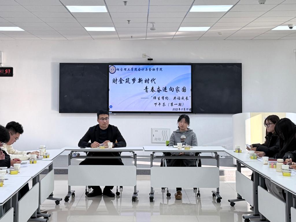 为搭建师生交流平台,凝聚成长共识,助力学生在思想与专业领域同步提升,11月19日,会计与金融学院于综合楼S203举办“财金筑梦新时代 青春奋进向家国 师生有约 共话成长”下午茶活动。会计与金融学院党总支副书记褚亮辉、团总支副书记曹春蕾、学院辅导员以及学生代表共同参与。